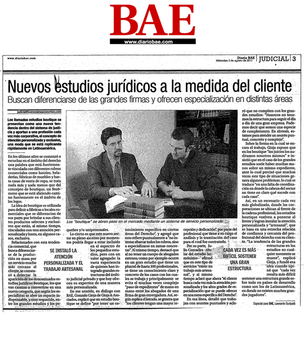 9 Ago 2011 A la orden del cliente por pyramint | publicado en: Uncategorized | 0 Nuevos estudios jurídicos buscan diferenciarse.